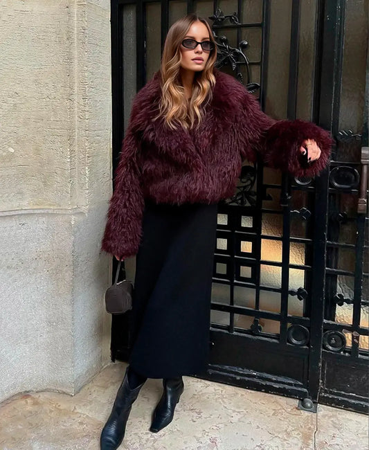 55% İndirimLorven™ Kadife Güllü Suni Kürk Mont