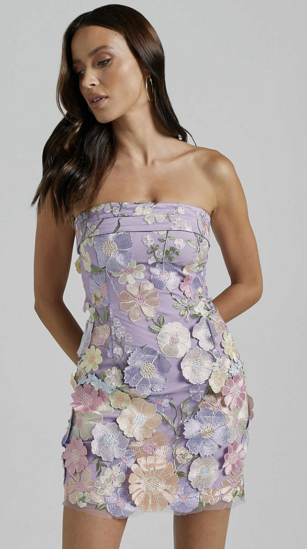Lorven™ Mini Elbise – Straplez Bodycon Bahçe Çiçekleri Elbise